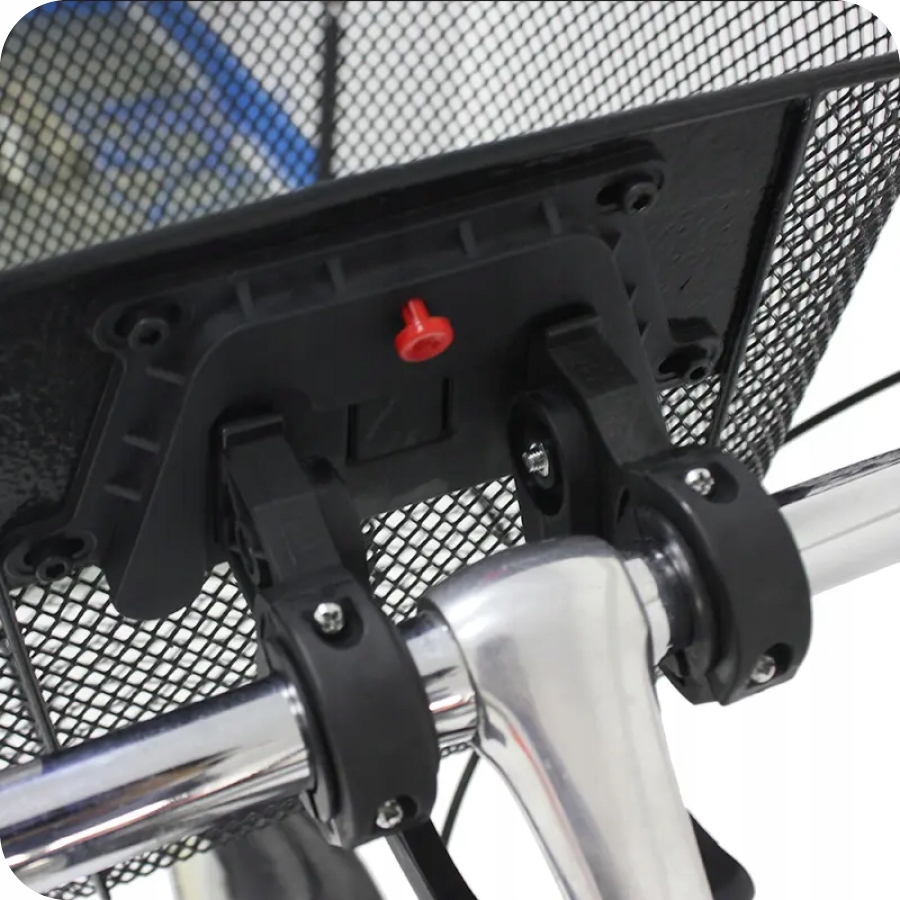 Держатель для крепления корзины к велосипеду изготовлен из высококачественного пластика. Сама ручка крепится непосредственно к рулю с помощью шестигранных винтов с внутренним шестигранником и дополнительно поддерживается снизу руля для разгрузки всей конструкции.