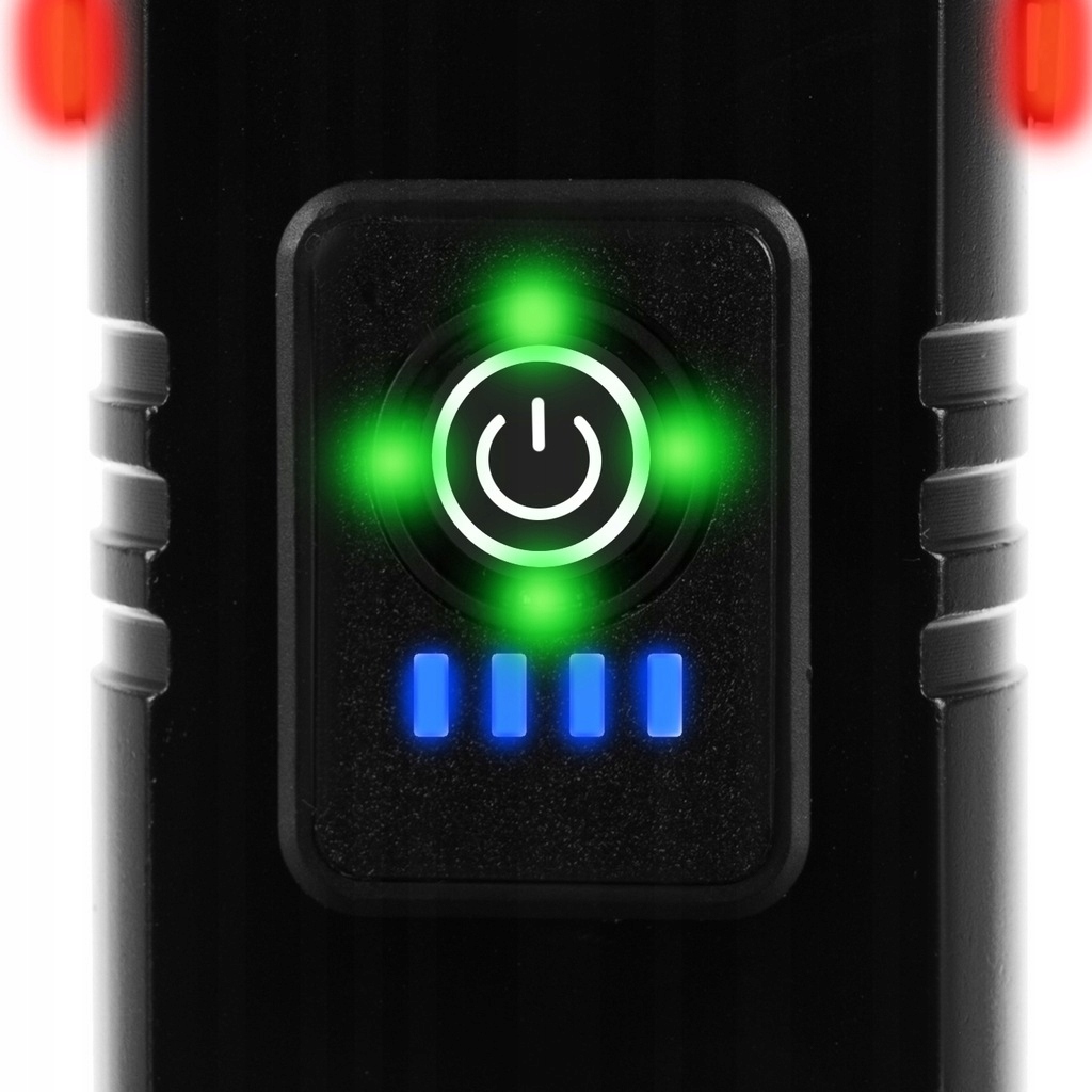 Заряжается при подключении к USB-порту. Устройство имеет синие диоды. Они загораются во время зарядки и показывают состояние батареи, когда индикатор включен.