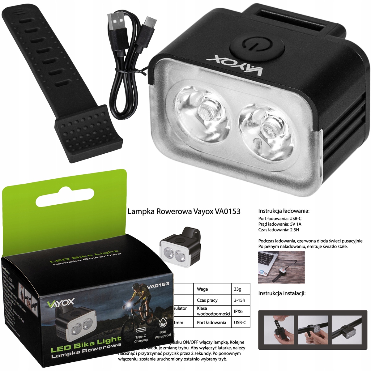 ВЕЛОСИПЕДНА ЛАМПА НА ПЕРЕДНЬОМУ РУЧКУ СВІТЛОДІОДНЕ ПІДСВІТЛЕННЯ ВЕЛОСИПЕД USB VAYOX
