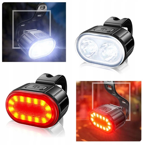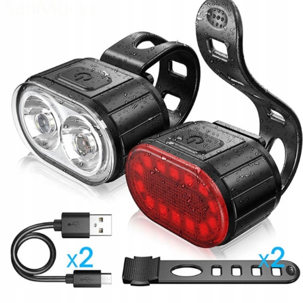 LAMPKA ROWEROWA PRZÓD I TYŁ ŚWIATŁO LED ZESTAW NA ROWER USB MOCNA JASNA
