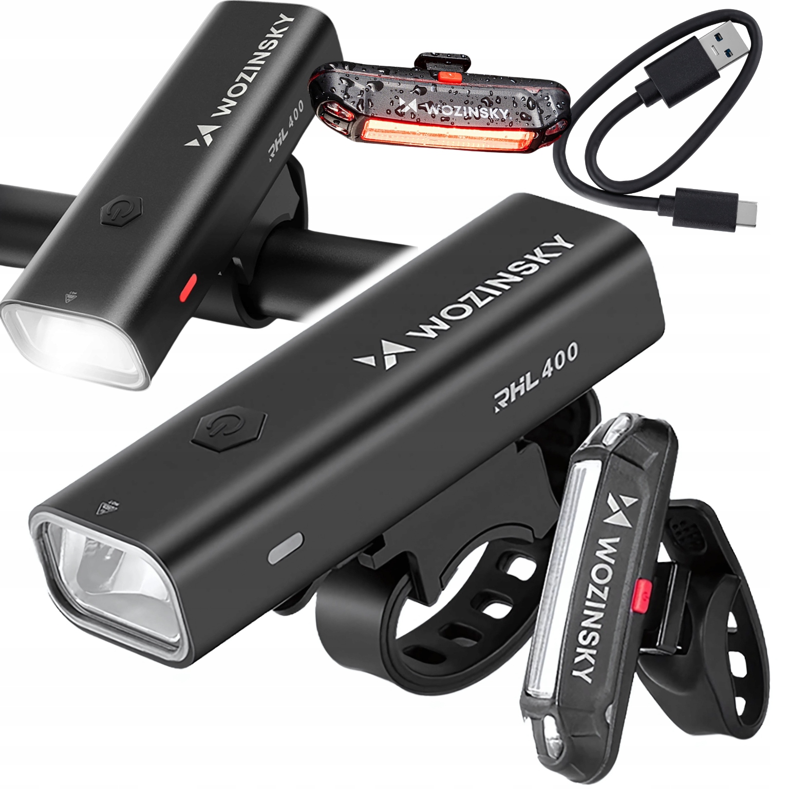 набор велосипедных светильников Wozinsky WSBLB2 Front (400 LM) и заднего USB -C - Черный