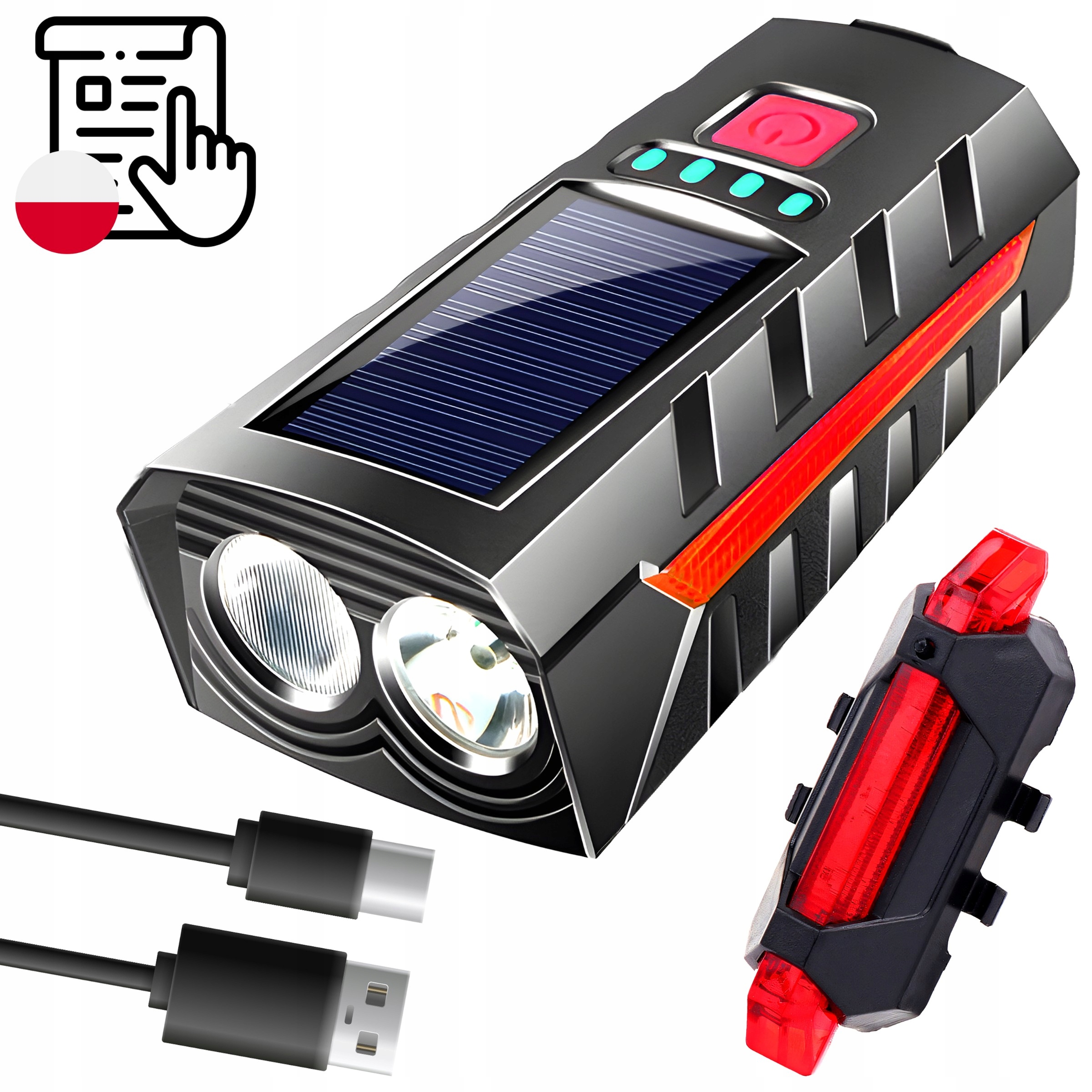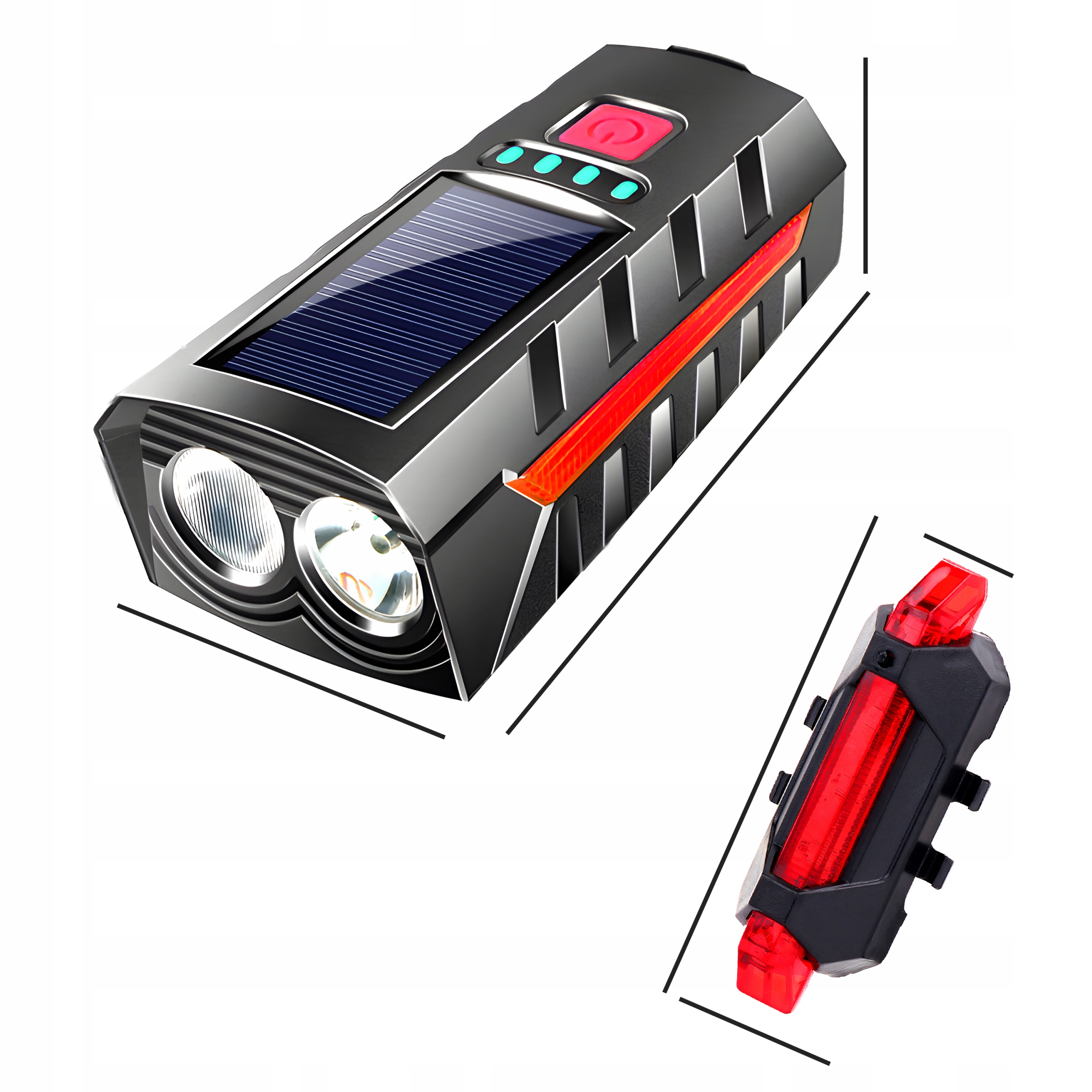 СОЛНЕЧНАЯ ВЕЛОСИПЕДНАЯ ЛАМПА ПЕРЕДНЯЯ ЗАДНЯЯ СВЕТОДИОДНАЯ ФОНАРЬ ДЛЯ ВЕЛОСИПЕДНОГО РУЛЯ + ГРУГОВЫЙ СИГНАЛ
