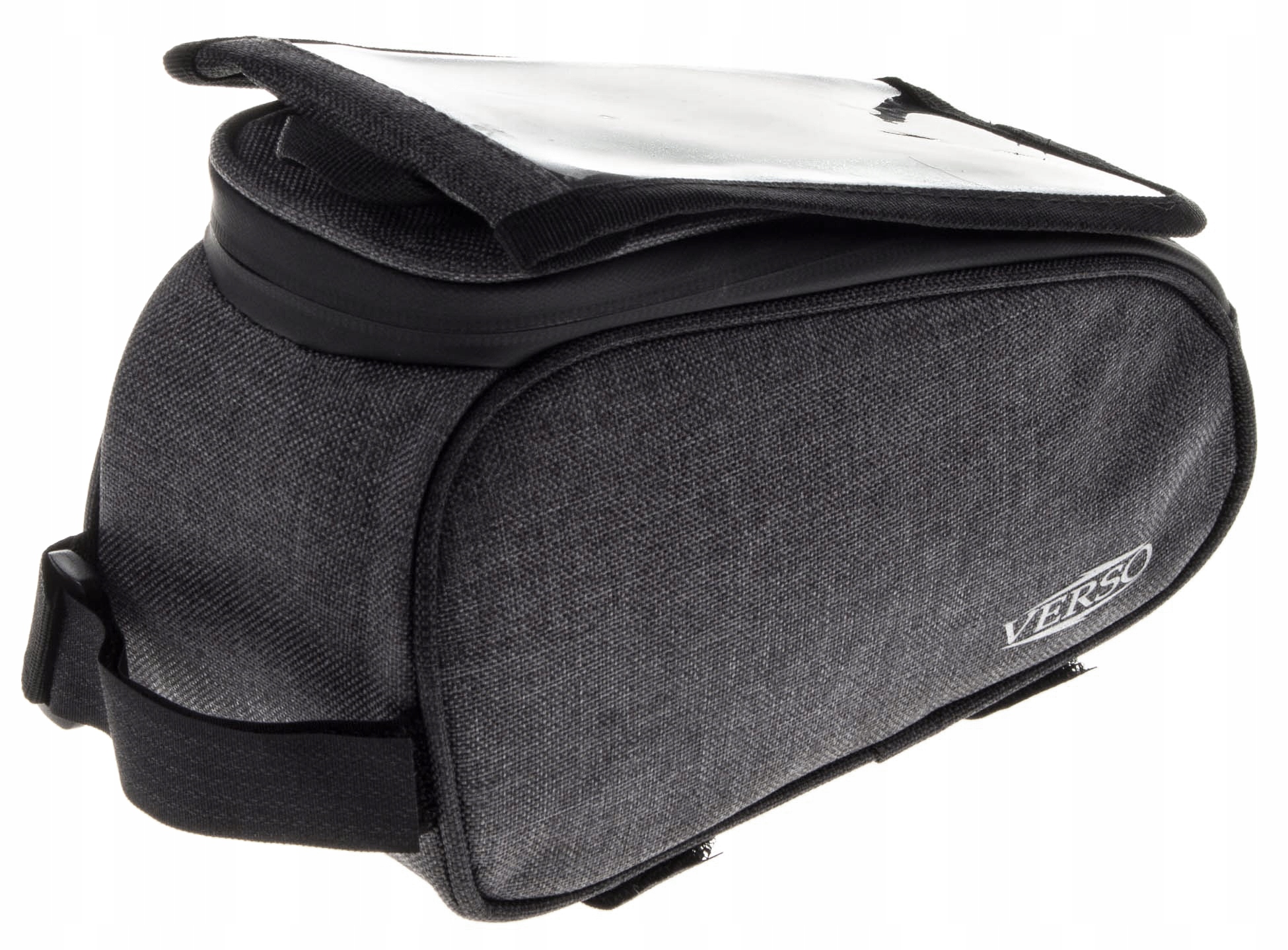 Велосумка VERSO, модель BRANCO. Это небольшая треугольная сумка на молнии, крепящаяся на раму велосипеда. Он оснащен специальным прозрачным чехлом для телефона, чтобы велосипедист мог легко пользоваться им во время езды. Сумка BRANCO изготовлена из водонепроницаемого материала черного цвета, что делает ее более устойчивой к загрязнениям. Для улучшения видимости на дороге на ней размещены светоотражающие элементы. Вместимость сумки составляет 2 л, и она идеально подходит для перевозки небольших велосипедных инструментов или необходимых аксессуаров.