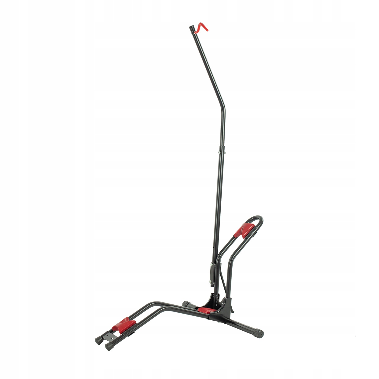 Надежная подставка состоит из стабилизированной (три точки опоры) основы, задачей которой является блокировка заднего колеса. В него рекомендуется помещать заднее колесо из-за большей жесткости системы, чем в случае с передним колесом. К нижней рукоятке прикреплен кронштейн стрелы, заканчивающийся прорезиненным крючком – предназначенный для вертикальной установки велосипеда. Ножки подставки отделаны резиновыми ножками, которые предназначены для амортизации и защиты пола – подставку также можно устанавливать в квартирах, на деревянные полы и панели без риска повреждения. Когда нижний упор (заднего колеса) отрегулирован правильно, шина не касается земли, что предотвращает изменение цвета земли.