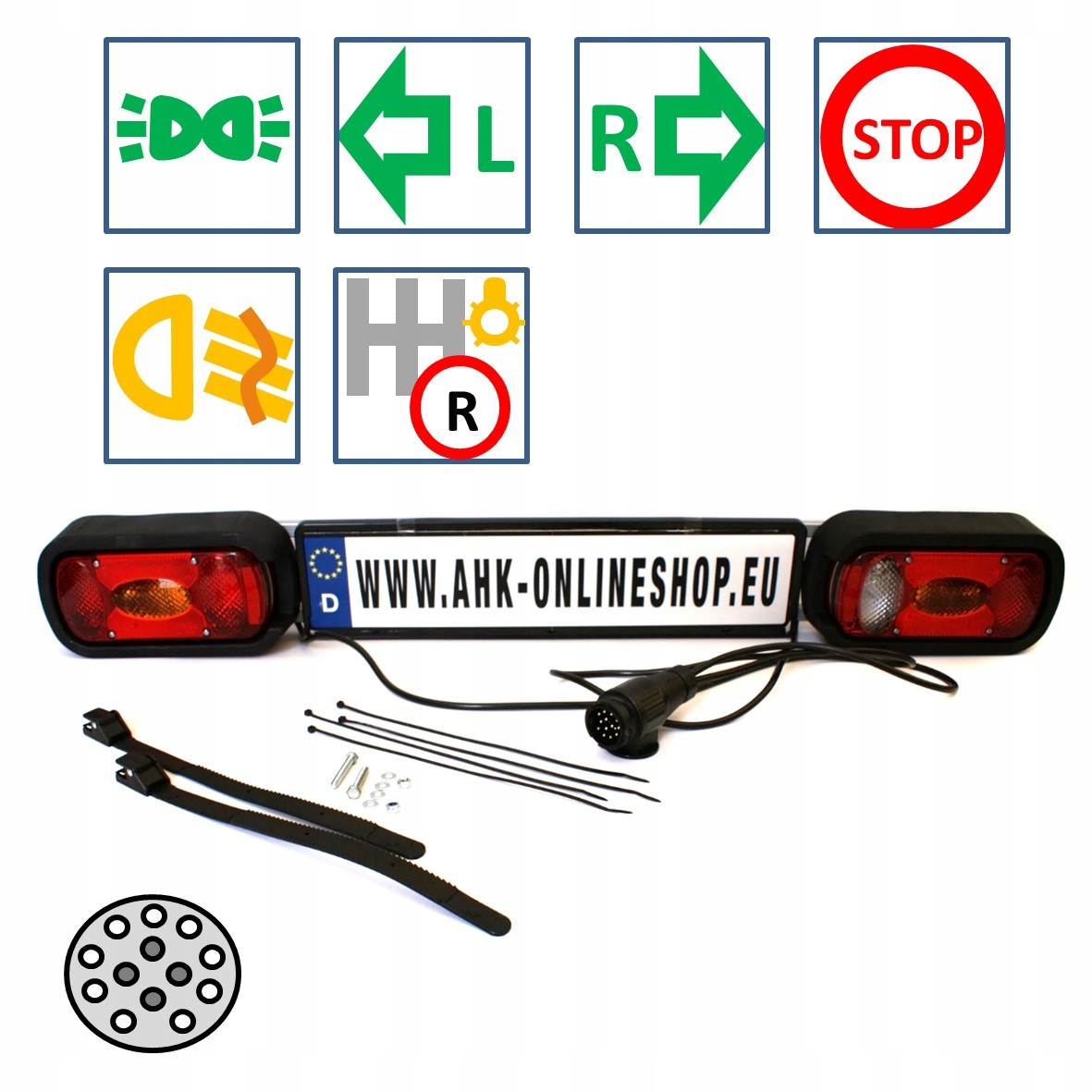 - Фонарь заднего хода благодаря 13-контактному разъему. Дополнительный 7-контактный адаптер.