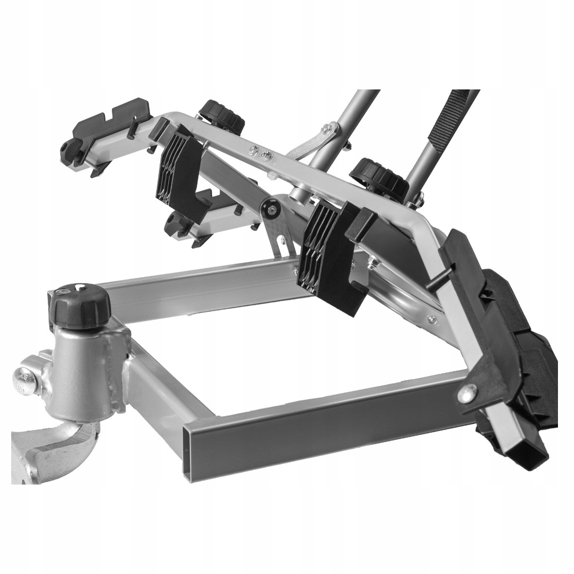 Основными особенностями этого багажника являются очень прочная стальная рама, стальные направляющие для велосипедных колес, головка, позволяющая очень быстро установить багажник на шаровую часть фаркопа, а также функция наклона, позволяющая открыть багажник. люк автомобиля даже при перевозке велосипедов.