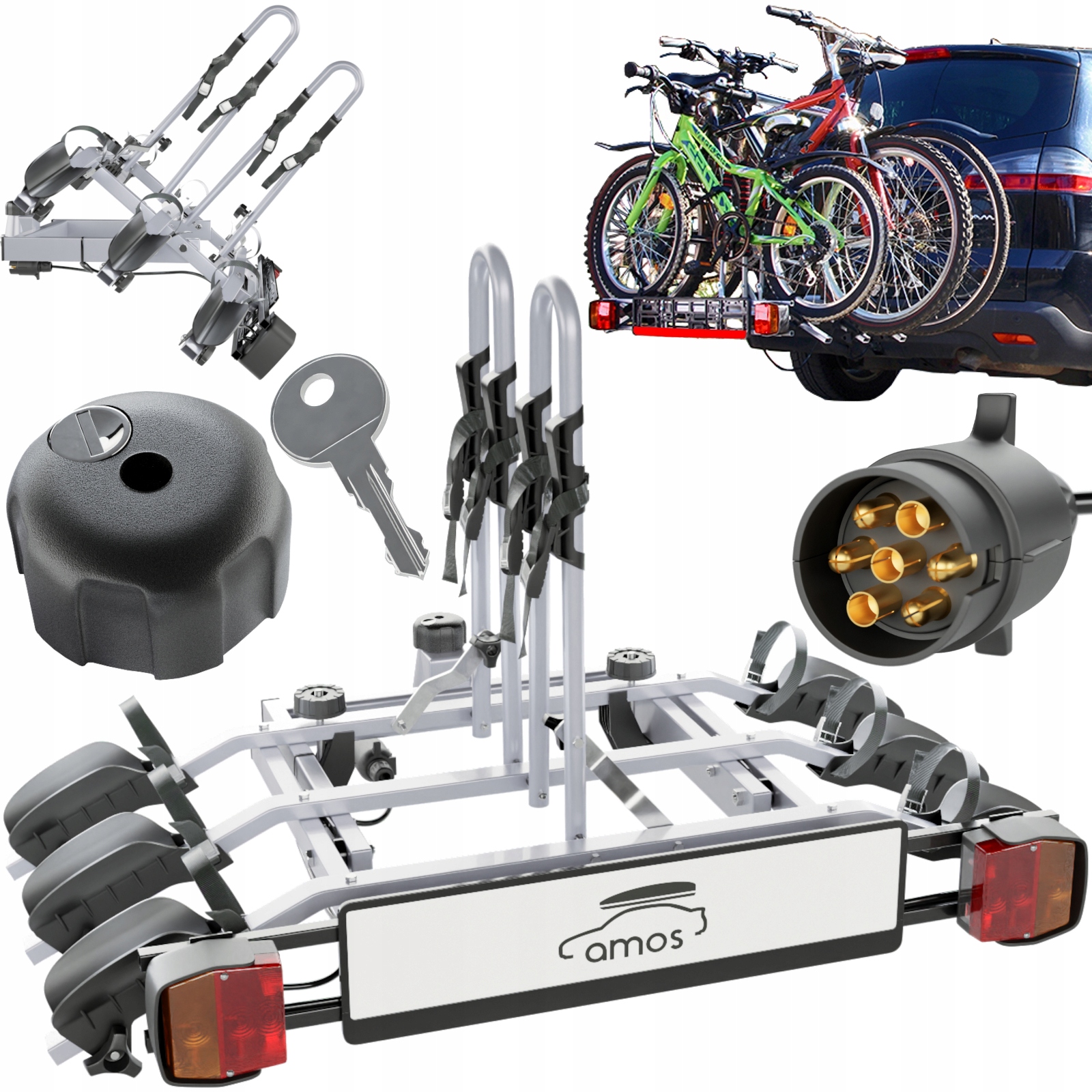 Велокрепление AMOS Tytan Plus 3 с 7-контактным прицепным устройством — надежное решение для всех любителей велосипедного спорта.