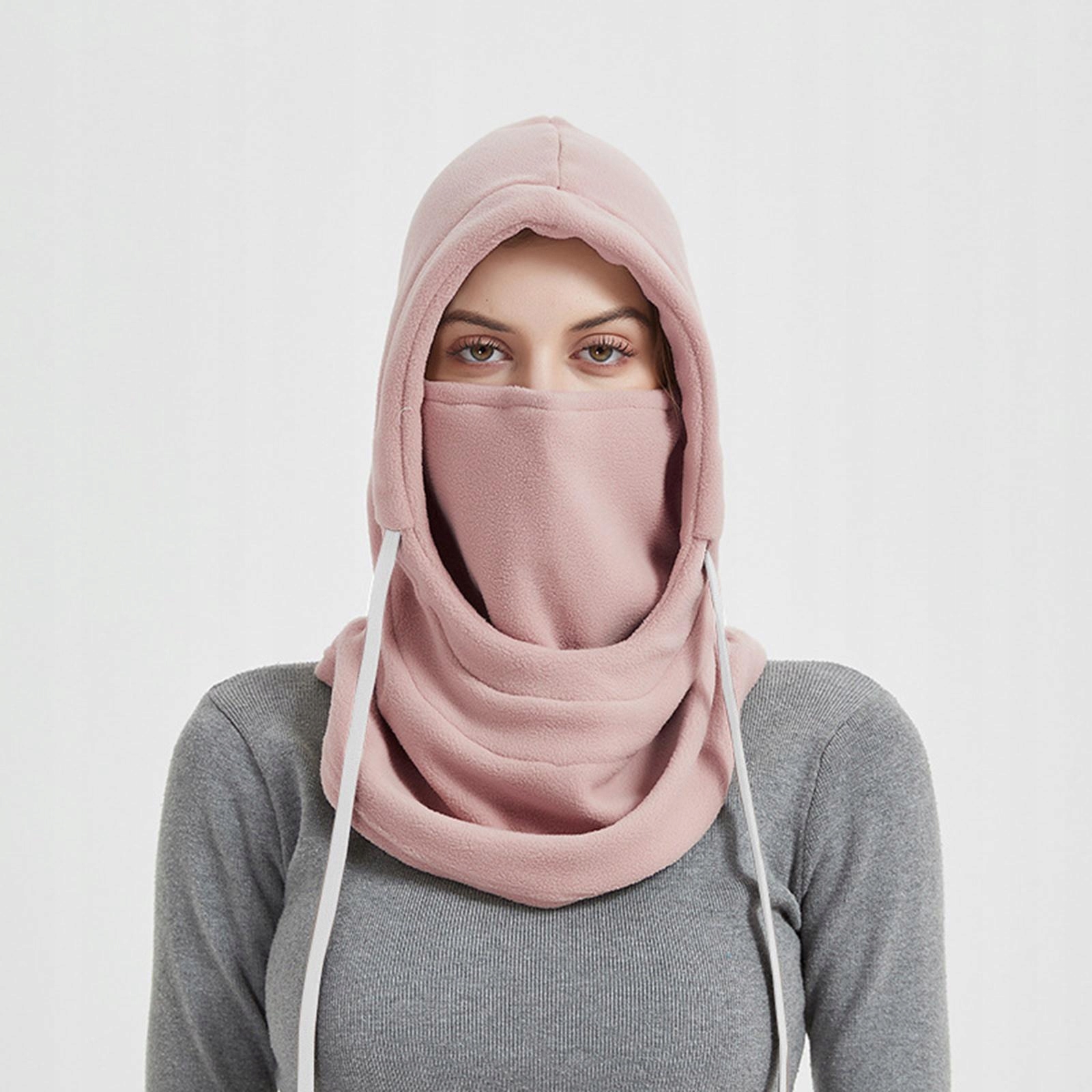 Универсальность: ткань, закрывающую подбородок/рот, можно подтянуть, чтобы увеличить охват лица, или опустить вниз и заправить под подбородок, чтобы есть или пить. Можно надеть шапку, закрывающую лицо, открытую балаклаву, гетру, толстовку с капюшоном.