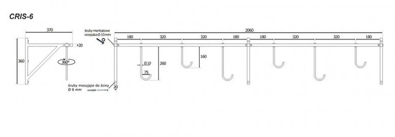 - возможность регулировки положения крючков в горизонтальной плоскости в пределах 360 градусов.