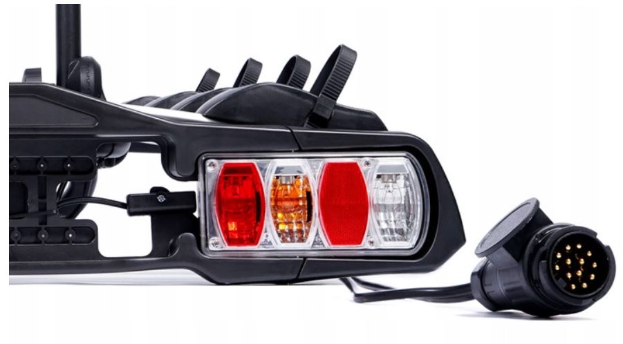В самом конце имеется место для номерного знака, а также плата освещения с лампами E-сертификата, подключаемая к автомобилю через 13-контактную розетку в передней части багажника. Изделие изготовлено из алюминия и стали.