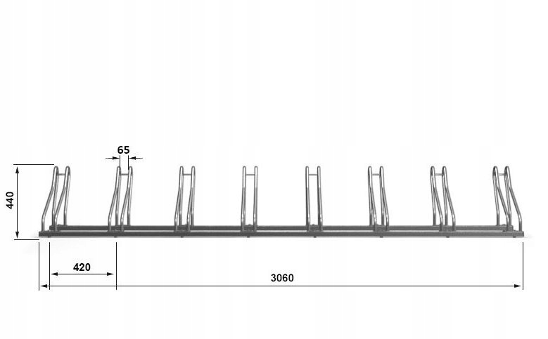- оптимальное расстояние между позициями ( 42см) позволяет бесплатно и безопасно парковать велосипеды независимо от их размера и типа.