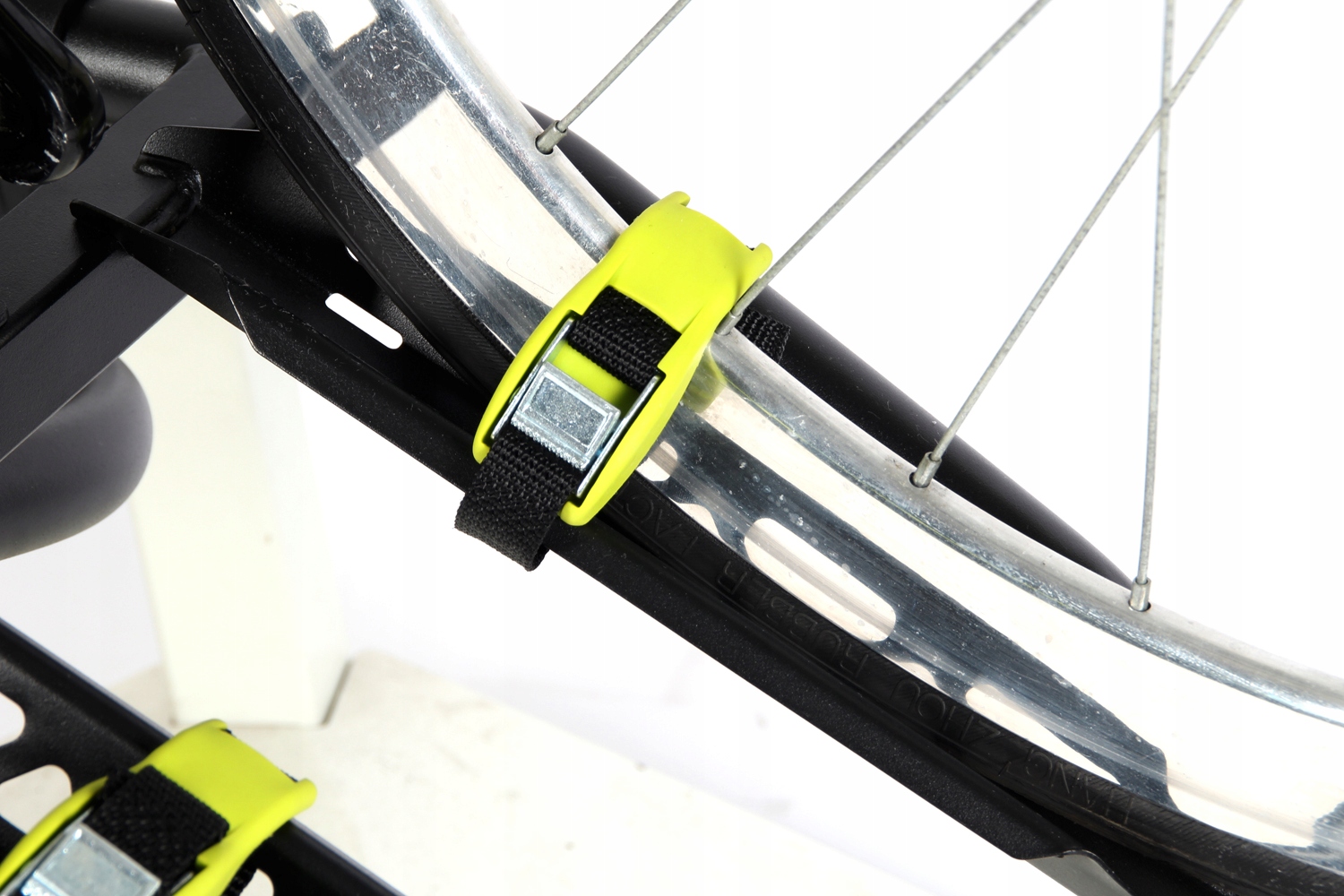В комплект входят ремни для крепления колес и рамы.