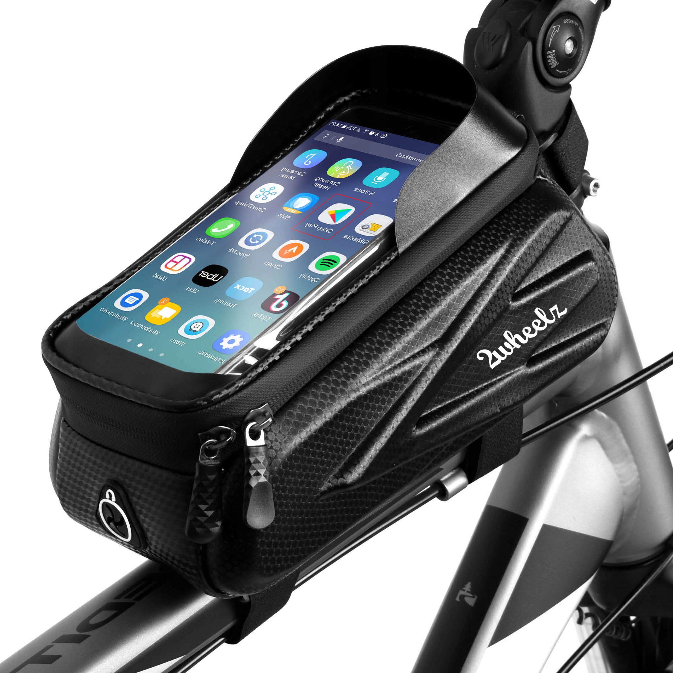 Велосумка 2Wheelz — идеальное велосипедное снаряжение. В комплект входит специальный чехол для телефона с функцией сенсорного экрана. Сумка подходит для всех моделей смартфонов с диагональю экрана до 7 дюймов. Сделана из материалов высочайшего качества с заботой. каждая деталь. Он водонепроницаем, имеет ламинированную основную молнию и твердую липучку. В просторном основном отделении с перегородками легко разместятся самые необходимые вещи, такие как: документы, ключи, очки и т. д. Также в сумке имеется выход для наушников, благодаря чему мы можем с комфортом слушать любимую музыку.