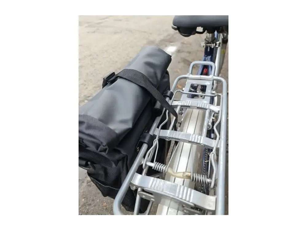 Простота сборки также является преимуществом этой практичной велосипедной сумки. Он оснащен ремешком-липучкой и пластиковыми клипсами, поэтому его можно легко и быстро прикрепить к багажнику и так же быстро разобрать, чтобы взять с собой - например, в магазин.