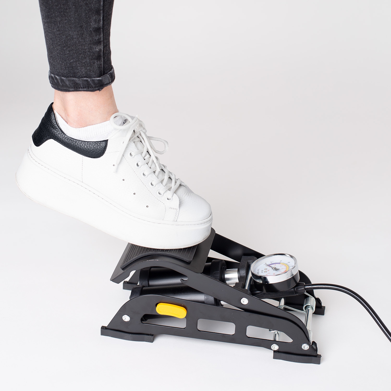 Широкое и устойчивое основание обеспечивает безопасное и комфортное накачивание без усилий, а эргономичная педаль повышает комфорт использования.