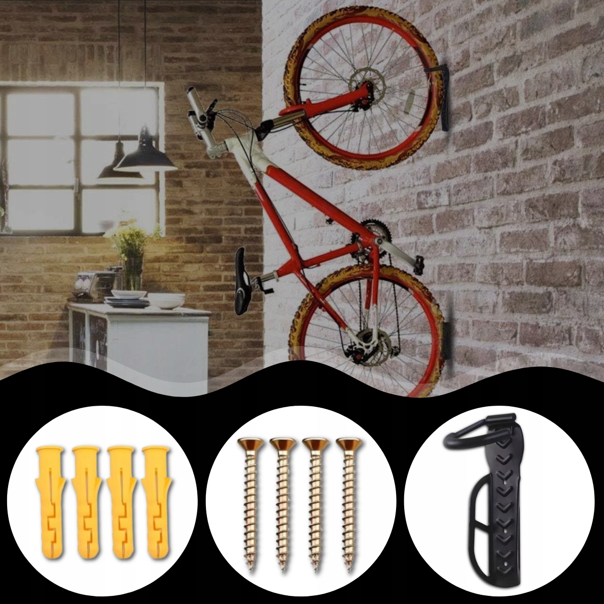 велосипедная велосипеда для велосипеда на стену B> Закрепление велосипеда к стене он экономит ценное пространство на полу, идеальное решение для людей с ограниченным количеством места в гараже, дома или в подвале. Для 2 дюбелей гарантируют безопасную поддержку даже для более тяжелых велосипедов > Wygodne Wykonywanie Napraw: dzięki łatwemu dostępowi do roweru umieszzonego na wieszaku, można wygodnie dokonywać drobnych napraw luberwację, co ulrymanie