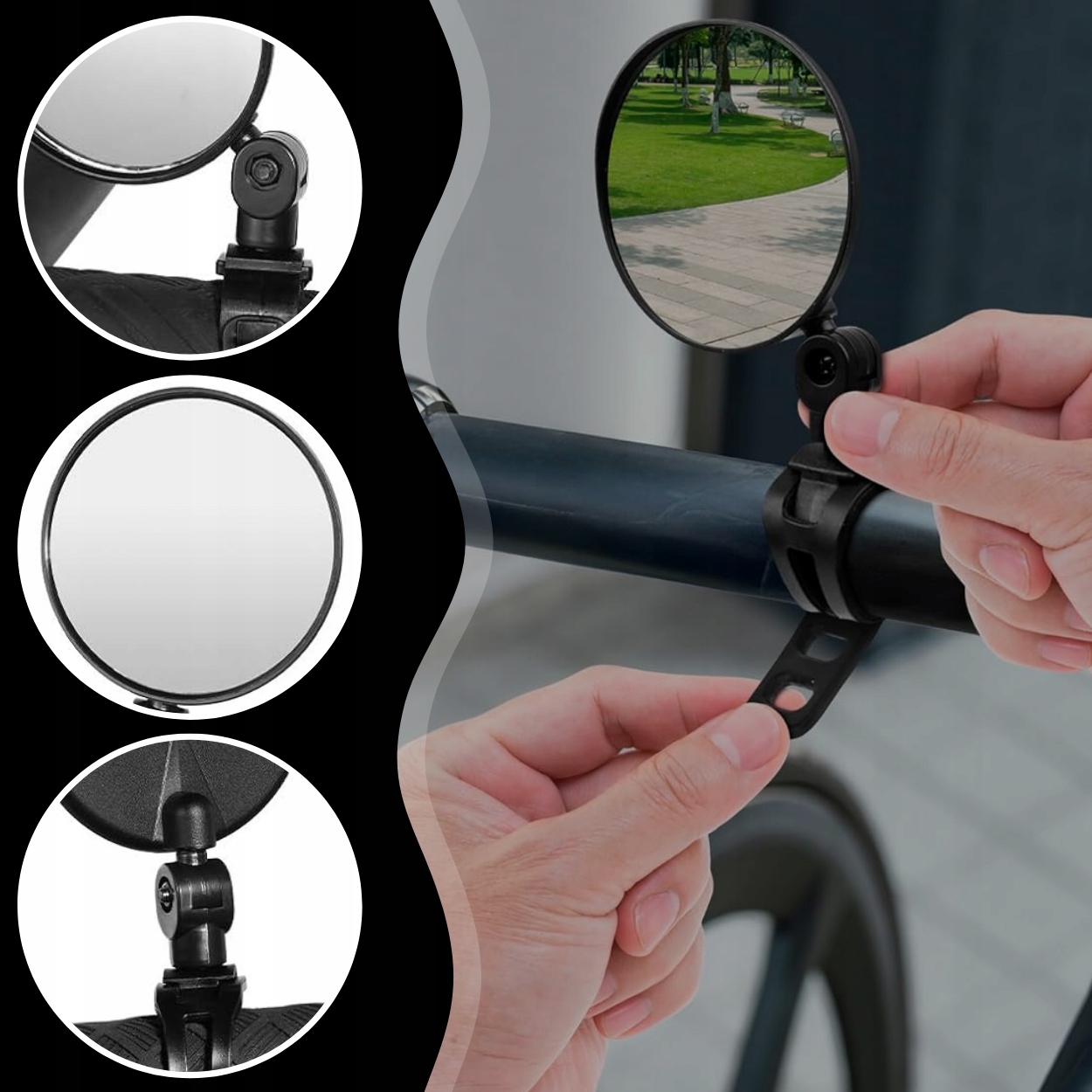 ✔️Удобное использование✔️Возможность свободно регулировать угол наклона делает использование зеркала комфортным и функциональным. . Пользователь может быстро и легко регулировать угол обзора в зависимости от дорожных условий и собственных предпочтений, что способствует комфортной езде на велосипеде.