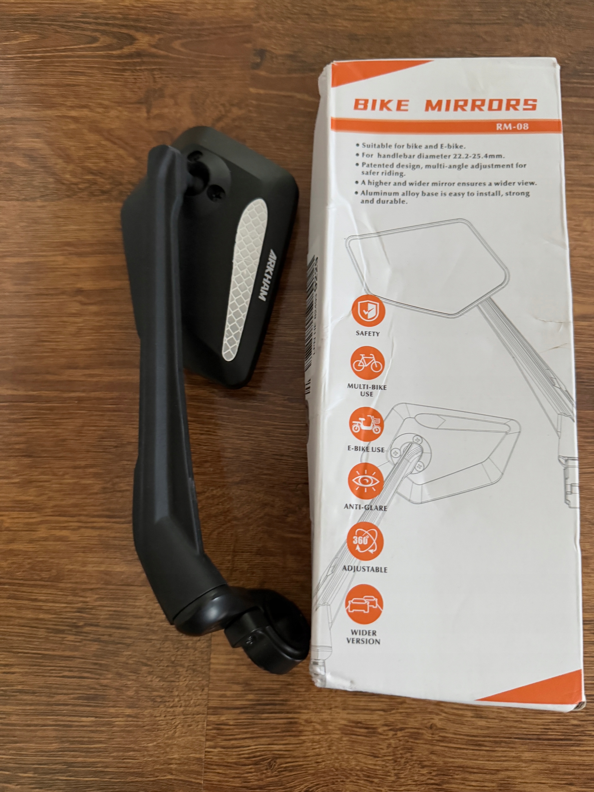 ВЕЛОСИПЕДНЕ ДЗЕРКАЛО САМОКАТ RM-08 ПРАВЕ ЧОРНЕ HD GLASS