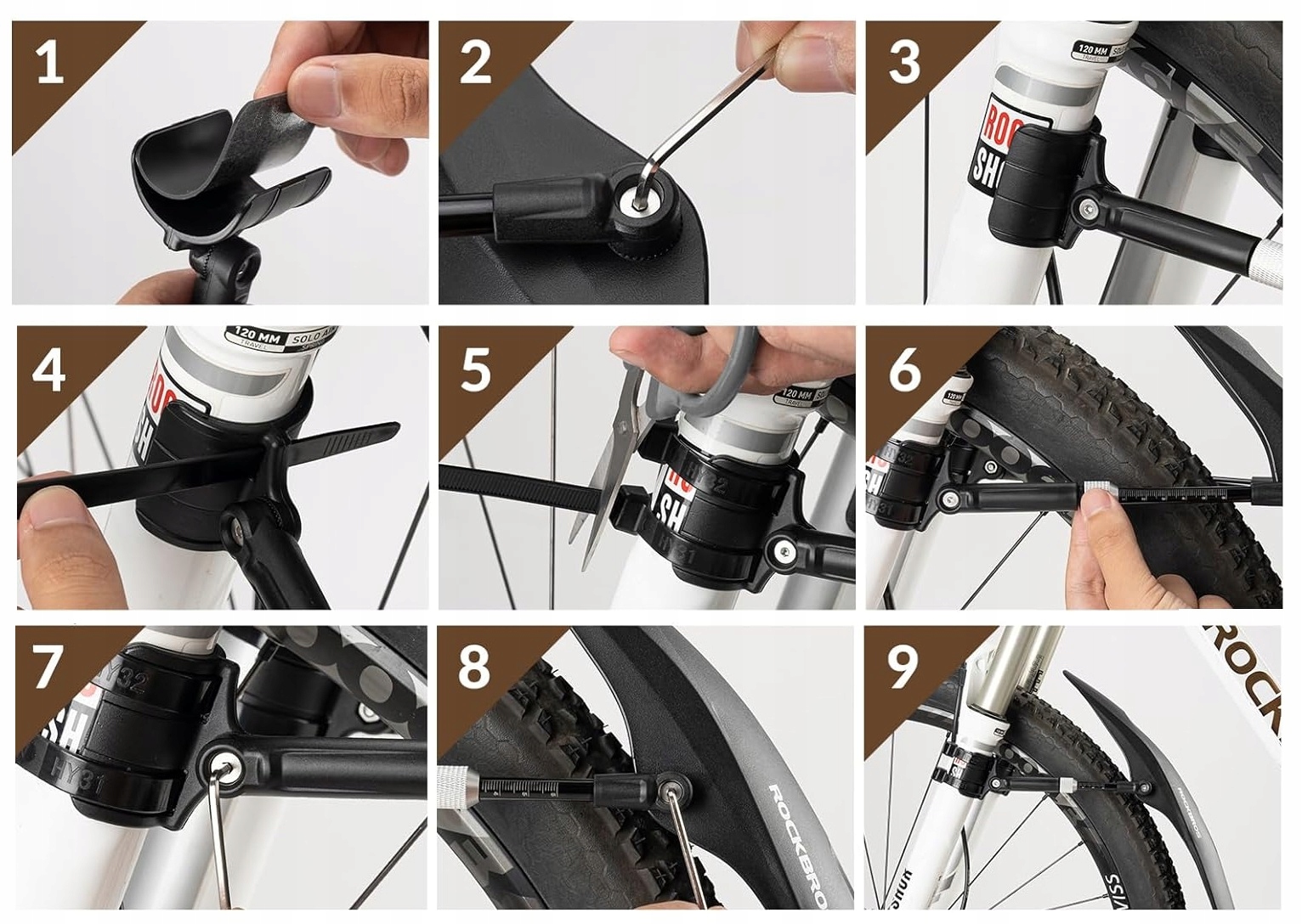 ➡️ Съемная конструкция - просто открутите две серебряные гайки, фиксирующие кронштейны, и брызговик можно снять (часть со стяжками троса остается на велосипеде)