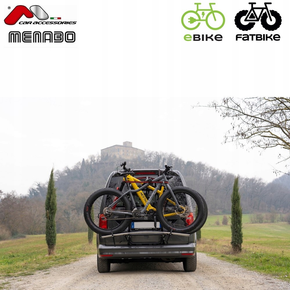 Menabo Cobra — одно из немногих решений, доступных на рынке, которое позволяет перевозить электровелосипеды и FAT Bikes весом до 22 кг каждый. , с шинами шириной до 110 мм и колесной базой до 1325 мм.