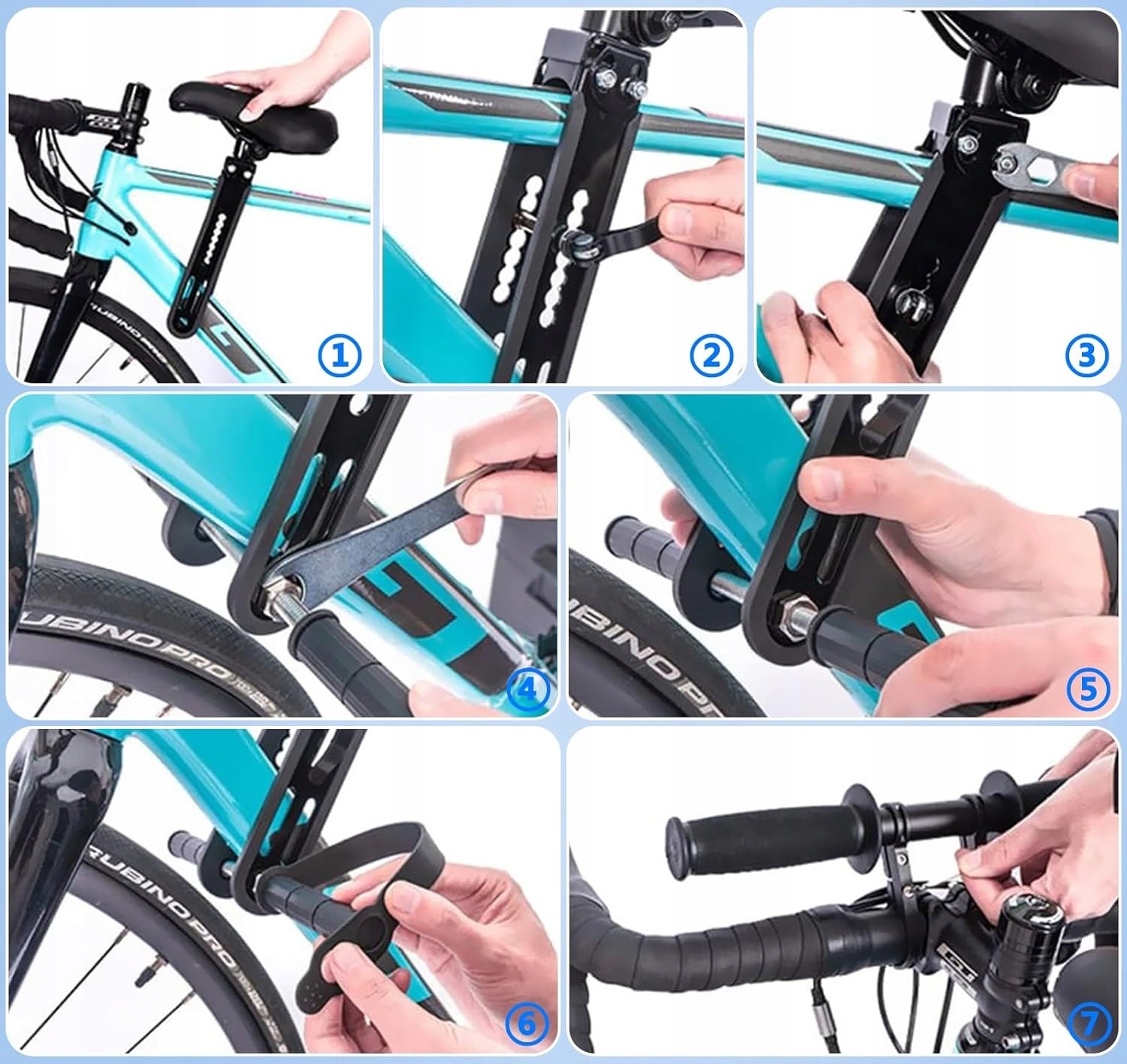 Изготовлен из высококачественных материалов, гладкий, прочный, устойчивый к разрыву, износу, ржавчине и коррозии. Это идеальный набор аксессуаров для горных велосипедов для родителей, который дает детям приятное времяпрепровождение между родителями и детьми и лучший вид на природу, обеспечивая стабильную, комфортную и безопасную езду.