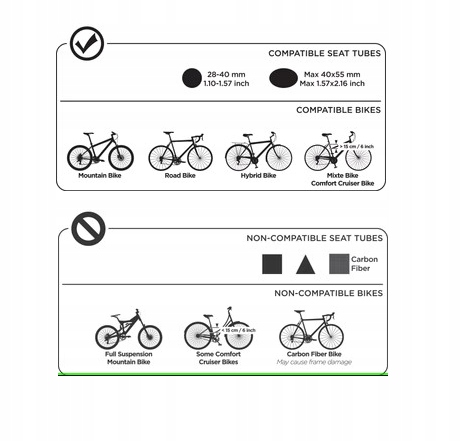 - Универсальный держатель с механизмом быстрой установки позволяет быстро установить сиденье или снять его с велосипеда. Подходит для большинства велосипедных рам (круглых 28-40 мм в диаметре и овальных 40 х 55 мм).