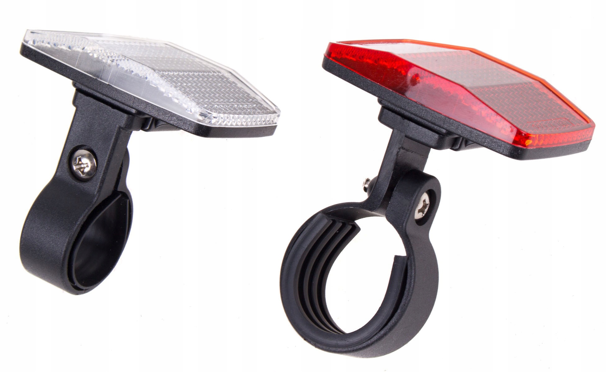 Набор велосипедных отражений на передней и задней части велосипеда. Отражатели бывают 2 цвета: красный и белый. Они прикреплены с использованием прикрепленных винтов. Они обеспечивают лучшую видимость после темноты, что оказывает прямое влияние на повышение безопасности дорожного движения. Идеально отражает свет даже с большого расстояния.