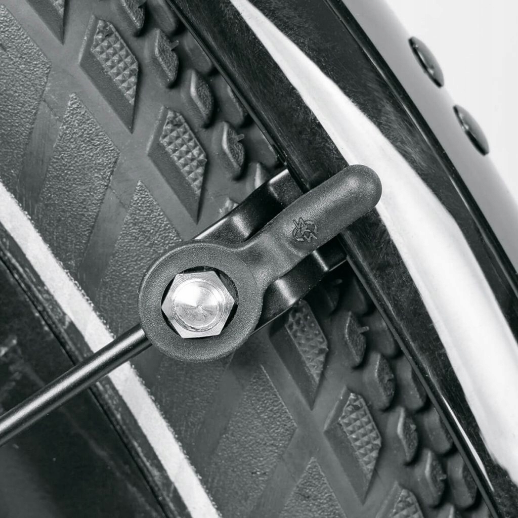 Благодаря черной глянцевой поверхности и черным крепежным элементам BLUEMELS BASIC также не оставляет желать лучшего с точки зрения внешнего вида. Система безопасности ESC отключает опоры, если ветки застревают между спицами, предотвращая заедание колеса. V-образные стойки с фиксированными перемычками гарантируют индивидуальную посадку. Вырезы для нижнего кронштейна позволяют осуществлять установку даже при небольших монтажных зазорах. Включает аксессуары и кронштейны.