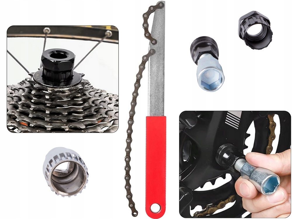 - Карманный набор инструментов для ремонта велосипедов, необходимый велосипед. Набор представляет собой смазку цепочки, ключ к откручиванию свободного колеса, коленчатого вала, клавиши и таверны, чтобы открутить кассеты. Работает с плоским ключом 24 мм