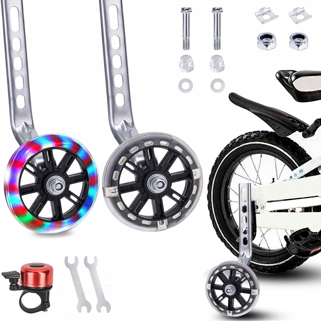 БОКОВЫЕ КОЛЕСА ВЕЛОСИПЕДА ОПОРНЫЕ КОЛЕСА, СВЕТЯЩИЕСЯ, УНИВЕРСАЛЬНЫЕ, 12-20 дюймов