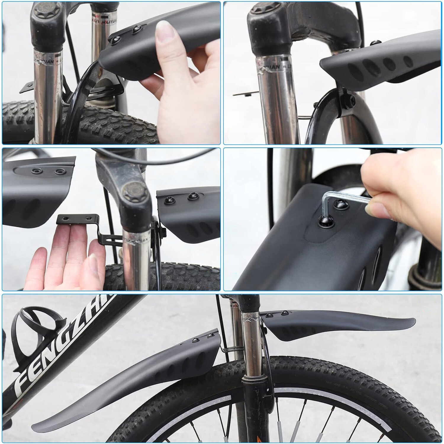 Подходит для большинства велосипедов: велосипедные крылья соответствуют всем стандартным горам и поперечным велосипедам с шинами с размером от 24 до 28 дюймов. Они сделаны из прочного и прочного материала из ПВХ, который не ломается и обеспечивает стабильную работу. Это отличный инструмент для защиты велосипеда от дождя и грязи. Наслаждайтесь неограниченным вождением в любую погоду!