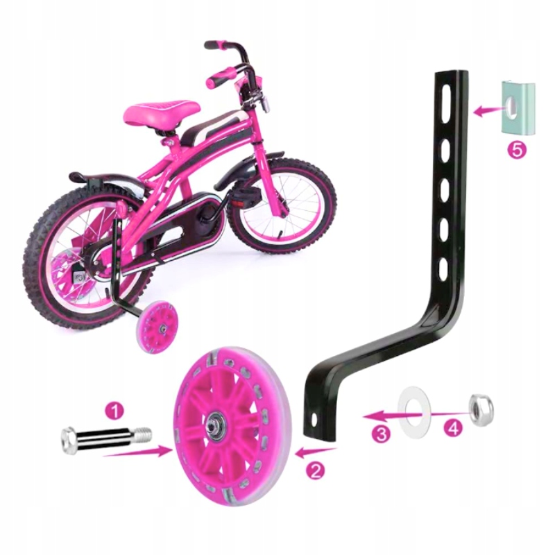 Комплект из двух боковых поддерживающих колес обеспечит устойчивость в первые дни обучения езде на велосипеде, что выражается в безопасности и позволяет ребенку учиться кататься, не опасаясь падения. Колеса оснащены светящимися светодиодами, что привлечет внимание каждого ребенка и побудит к большей физической активности на свежем воздухе, а также обеспечит лучшую видимость вашего ребенка в темное время суток. Легкую сборку обеспечивает фурнитура, входящая в комплект. Подходит для велосипедных колес от 12 до 20 дюймов.