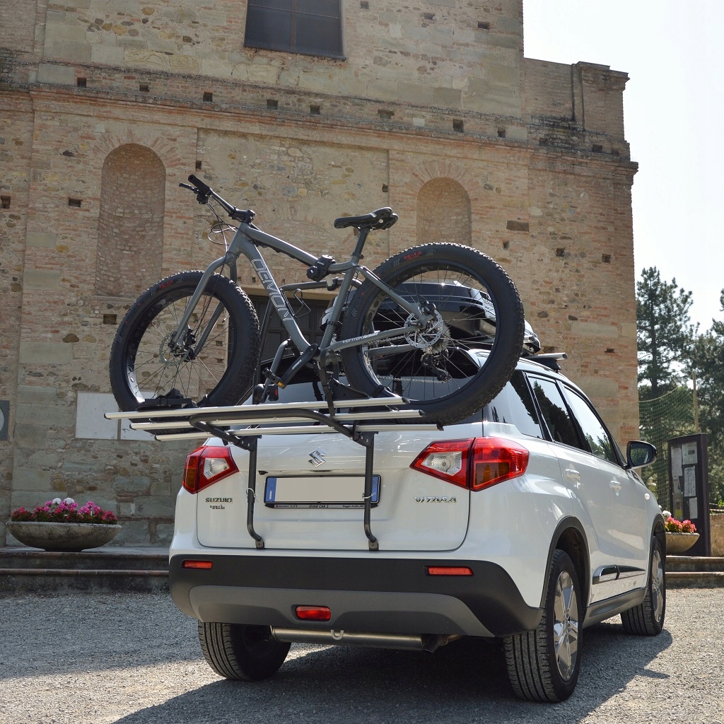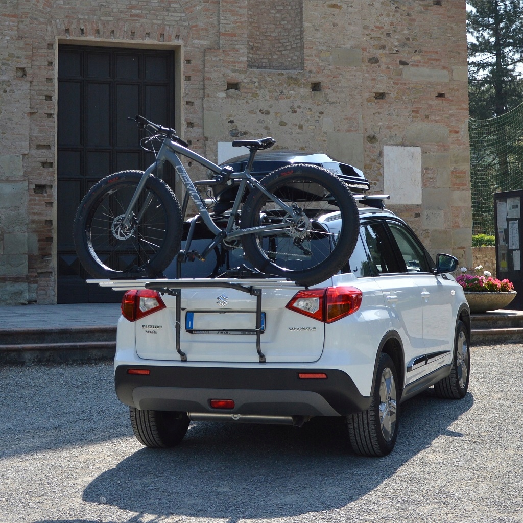 Качественный держатель для велосипедов от итальянского производителя Menabo, крепящийся на люк автомобиля.