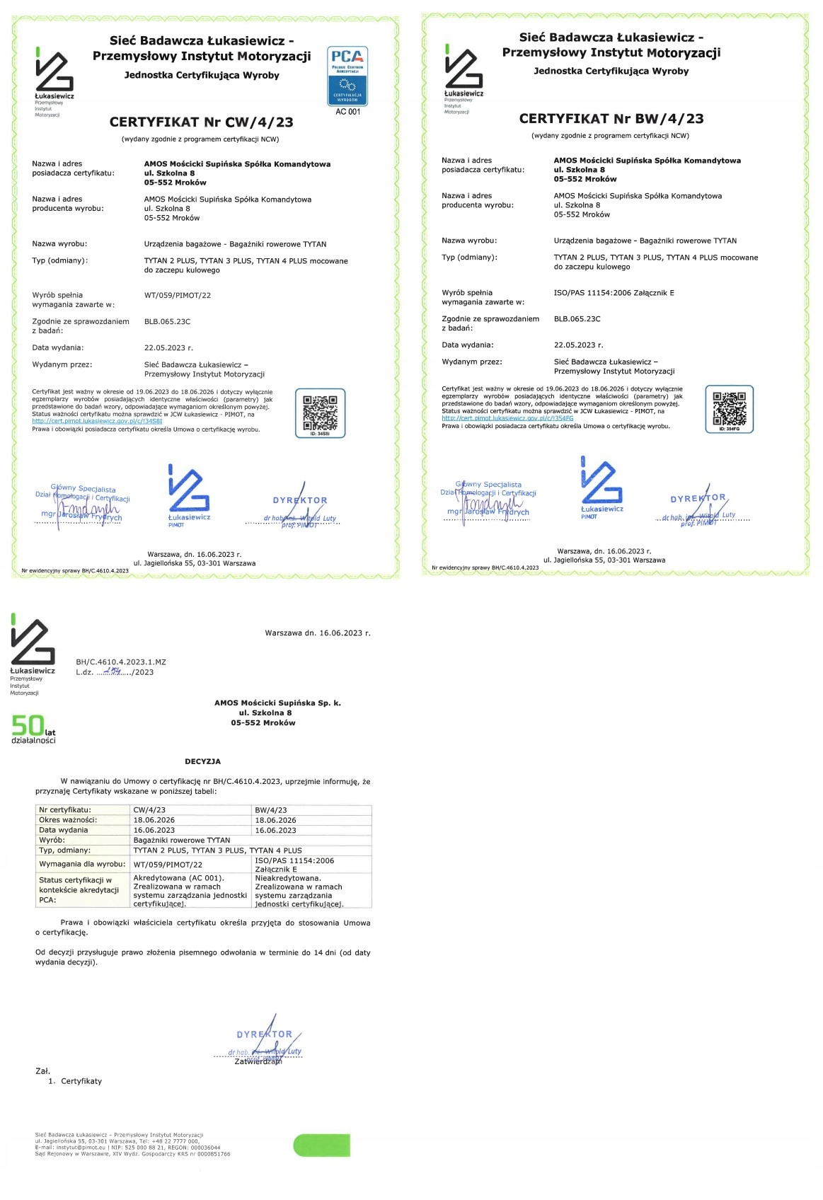 Amos Titan Bicycle Платформы прошли положительные тесты в промышленном институте автомобиля (Pimot-łukasiewicz)