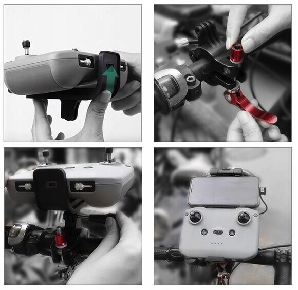 Инновационный держатель для контроллера дрона DJI, позволяющий разместить оборудование управления на руле велосипеда. Оно позволяет удобно управлять дроном даже во время езды.