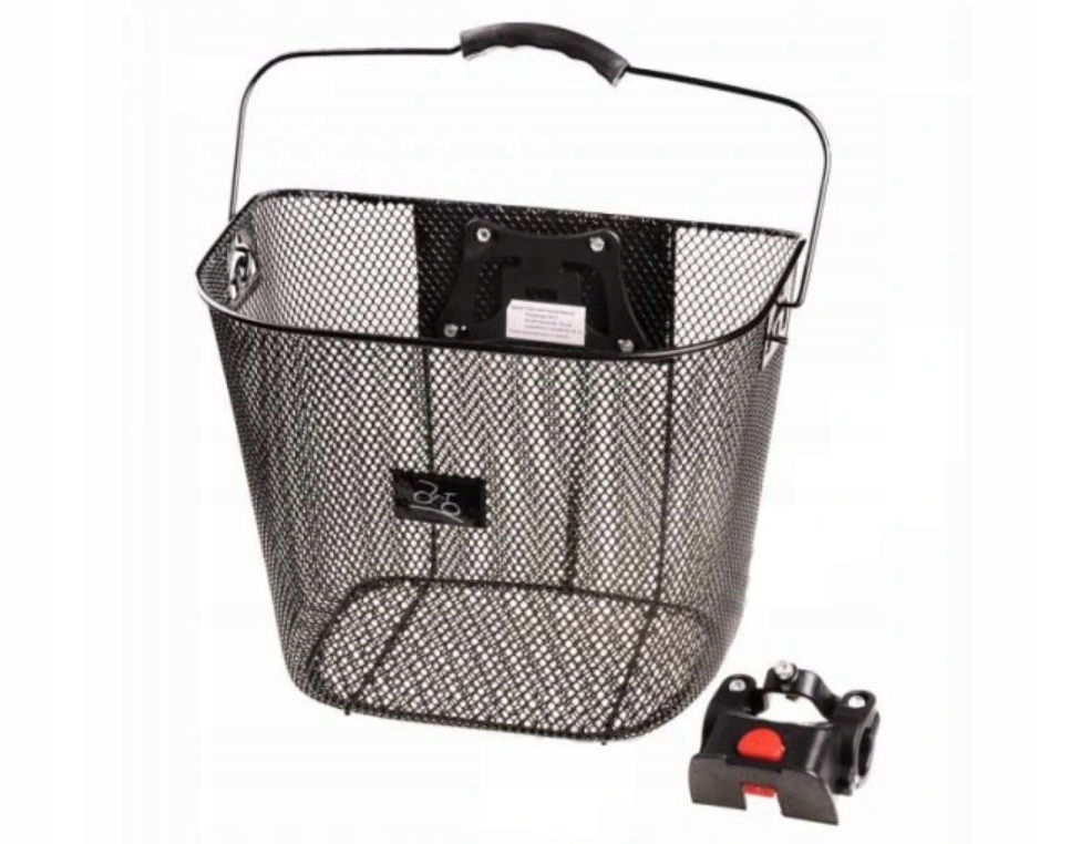 - Корзина для велосипеда из черной металлической сетки. Корзина крепится к рулю с помощью быстросъемного держателя типа "CLICK".