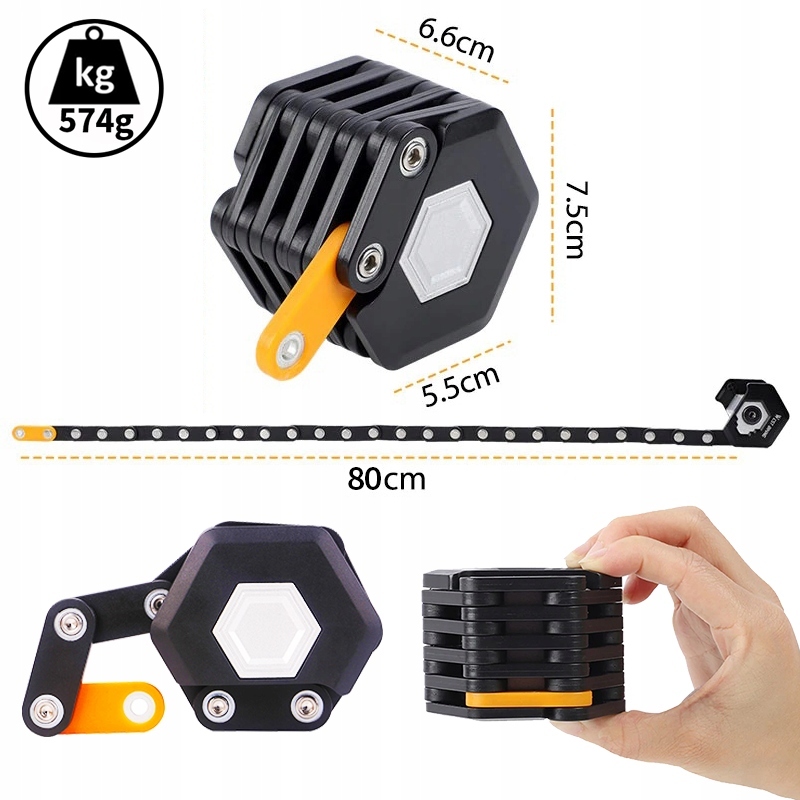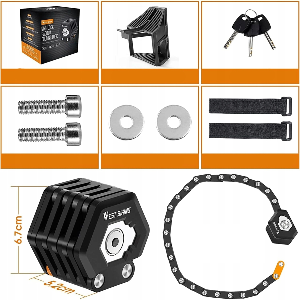 【Широкий диапазон применений】 Складной велосипедный замок состоит из 26 толстых сплавных ячеек, он имеет длину до 85 см и обеспечивает достаточно места для безопасной блокировки.
