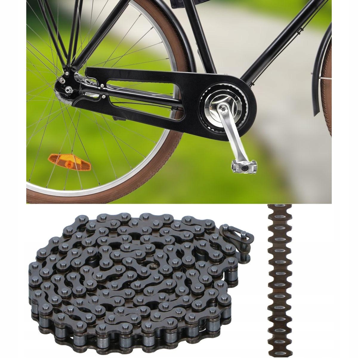 ВЕЛОСИПЕДНАЯ ЦЕПЬ 112 ЗВЕНЬЕВ 1/2x1/8 дюйма БЕЗ ВЕЛОСИПЕДНОЙ ПЕРЕДАЧИ придет вам на помощь, когда придет время ее заменить. При эксплуатации велосипеда цепь изнашивается с внутренней стороны роликов и пальцев, а также изнашиваются кольца пластин, поэтому ее длина увеличивается.