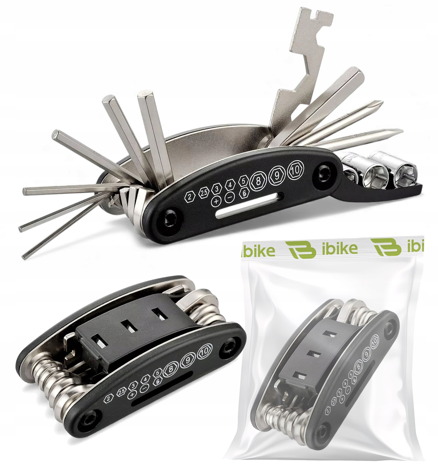 Велосипедный мультитул 16в1, шестигранные ключи, гаечные ключи - набор