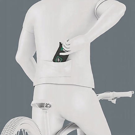 Чемодан идеально помещается в карман рубашки и поэтому является интересным решением для шоссейных велосипедистов, у которых нет седельной сумки. Сзади также имеются два петельчатых держателя для картриджей с CO2.