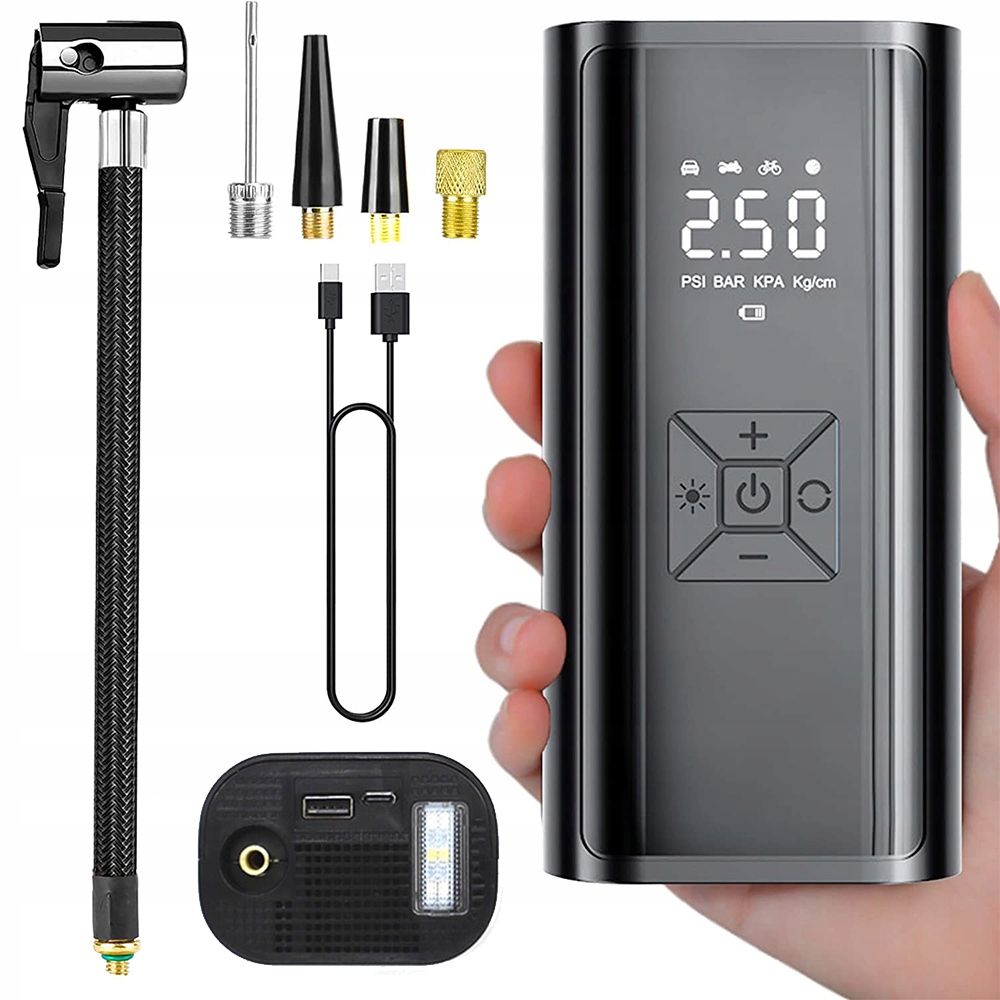 ✅Многократное использование — этот беспроводной воздушный насос поставляется с множеством различных вспомогательных насадок. Подходит для автомобилей, мотоциклов, велосипедов, электросамокатов, инвалидных колясок, баскетбольных мячей, футбольных мячей и т. д. Изделие обладает как функциональностью, так и эстетикой.