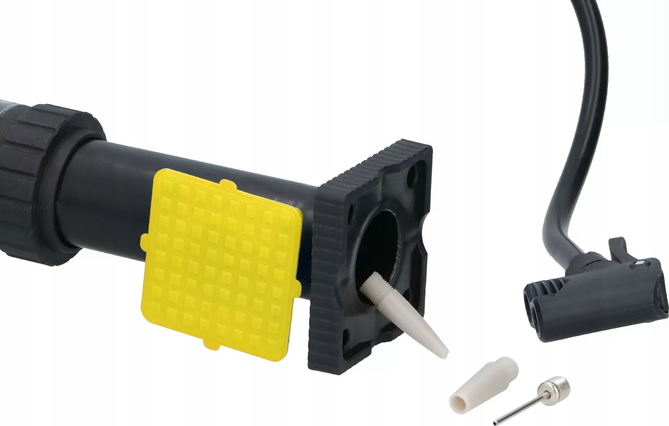 Насос чрезвычайно прост в использовании. В комплект входит широкий набор адаптеров. Все это дополняется удобным чехлом, позволяющим транспортировать насос на раме велосипеда. Чехол застегивается на молнию.