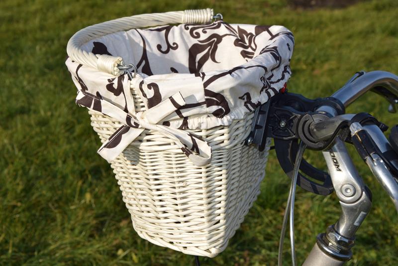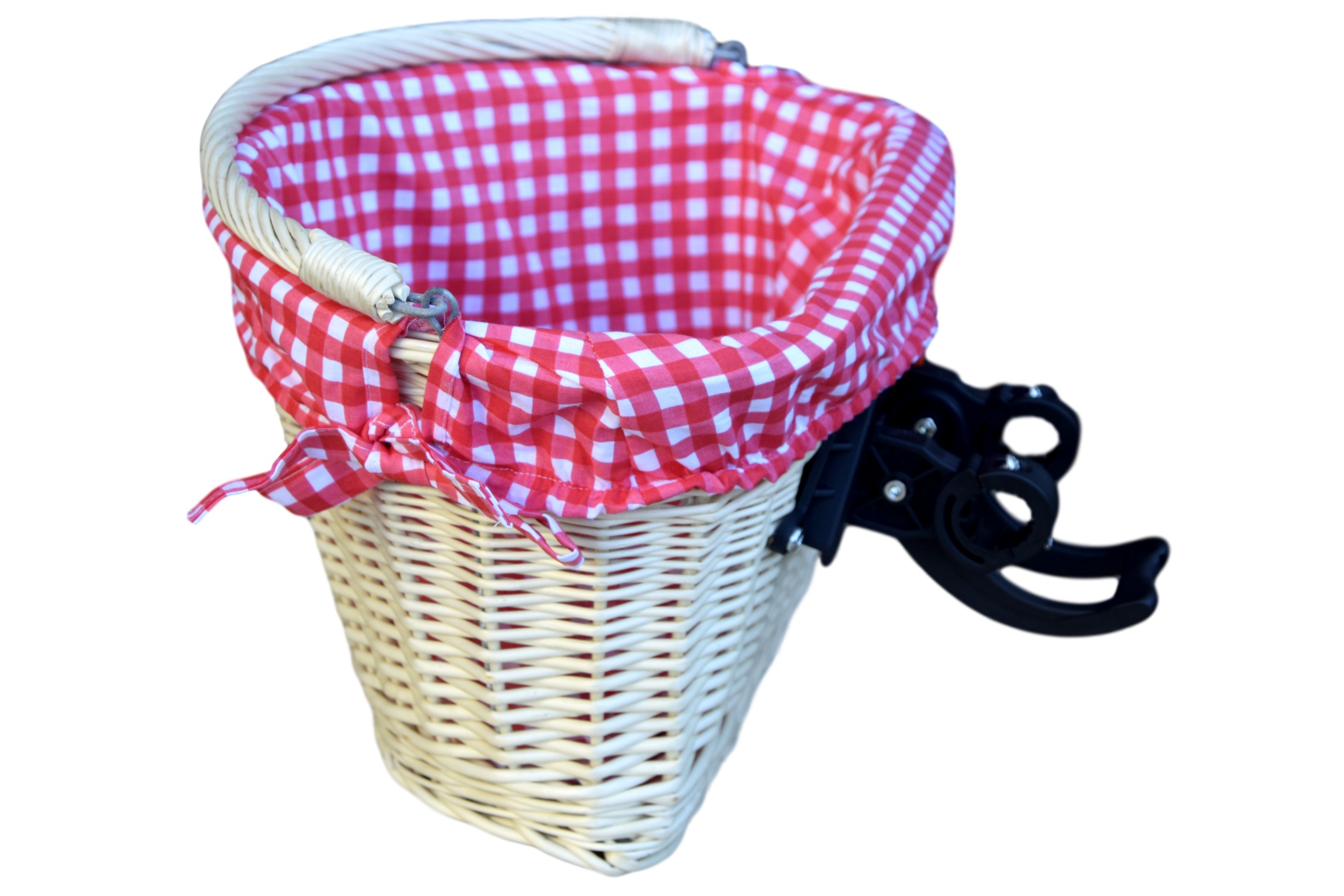 Корзина плетеная для велосипеда CLICK, БЕЛАЯ (НЕ ОКРАШЕННАЯ - белая с нежным экрю) + ПОДКЛАДКА - цвет подкладки на выбор (100% хлопок) - Корзина идеальна для велопоездок и шопинг. Тщательная обработка и прочная конструкция гарантируют, что покупки будут осуществляться в безопасном и удобном положении. Корзина крепится на передней части руля с помощью защелкивающегося крепления. Крепление корзины с помощью «КЛИК» обеспечивает быстрый монтаж и демонтаж корзины без использования дополнительных инструментов.