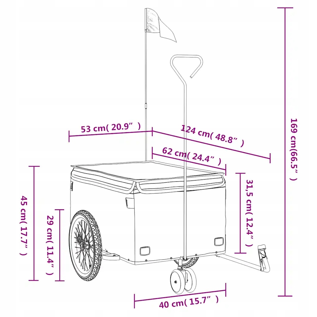 - Практичное решение: максимальная нагрузка этого велосипедного прицепа составляет 30 кг, поэтому он идеально подходит для перевозки тяжелых грузов, таких как багаж, растения, инструменты и продукты.