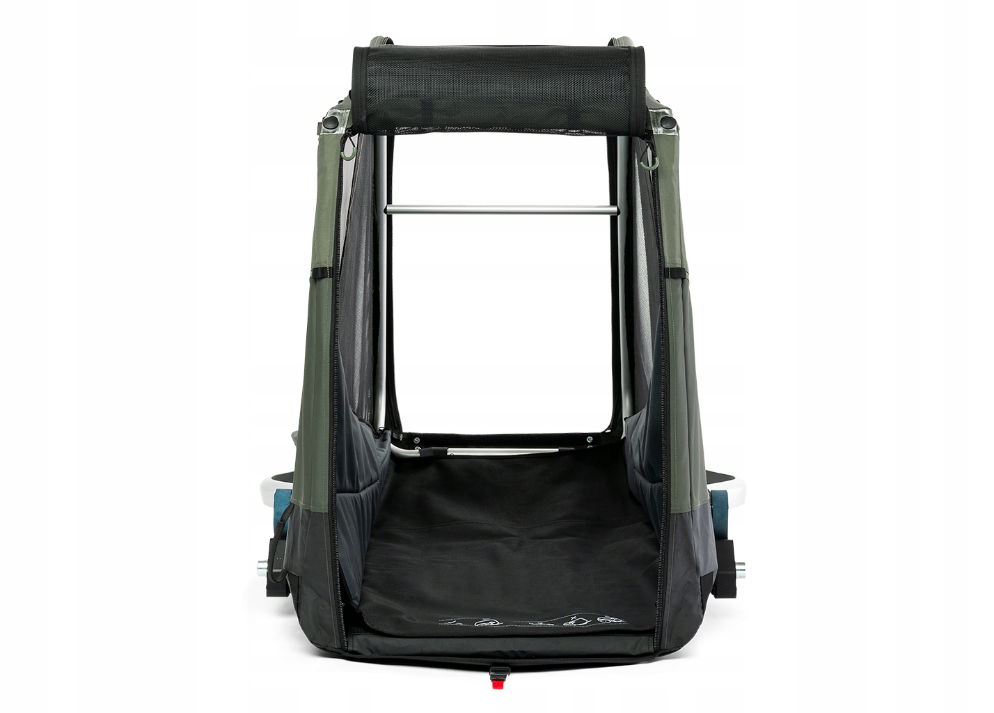 Трейлер оснащен сплошной панелью для пола и незрелым ковриком пола. Корпус покрыт материалом, обеспечивающим оптимальную вентиляцию благодаря наличию воздушных сетевых панелей комаров. Дополнительные отверстия и чехлы и их защита обеспечат комфорт как для любопытных четвероногих, так и еще более снятого.