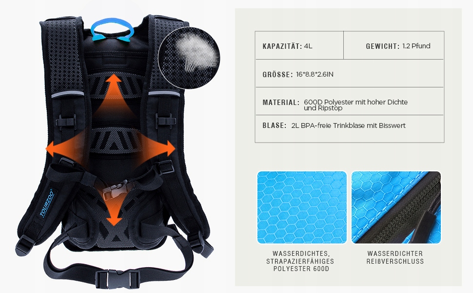 • Высокий клапан прикуса: репетитор туристического рюкзака не протекает, вода течет быстро, а после закрытия не капает на плечо, что делает его идеальным рюкзаком для велосипеда и водяным рюкзаком для бега, катания на лыжах, сноуборде и бега в поле.