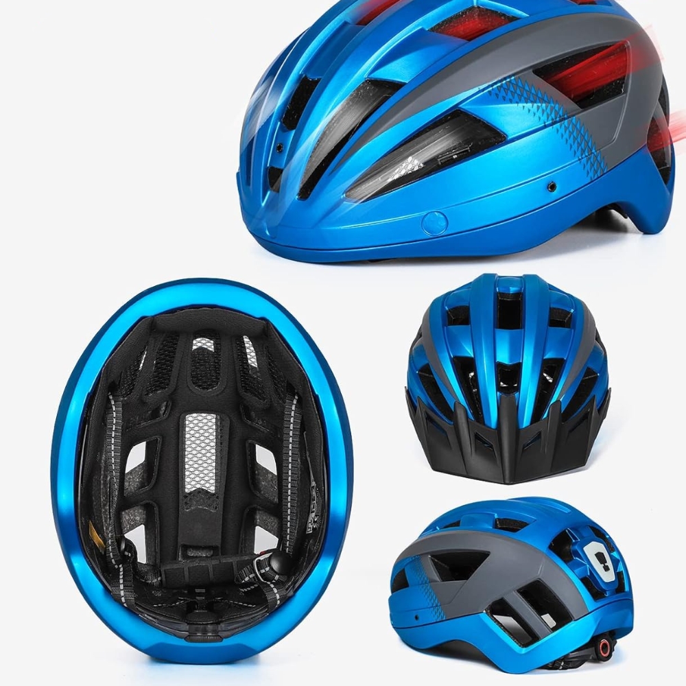 ✨Велошлем FUNWICT с магнитным козырьком и светодиодной подсветкой - синий и черный✨