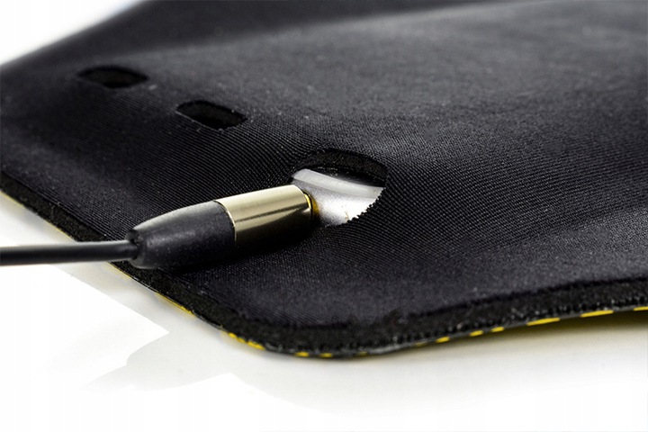 Помещенный внутрь телефон надежно удерживается в чехле, поскольку неопрен окружает его со всех сторон. Кроме того, отверстия, расположенные в соответствующих местах, позволяют подключить к телефону наушники, зарядное устройство или повербанк, не вынимая его из чехла.