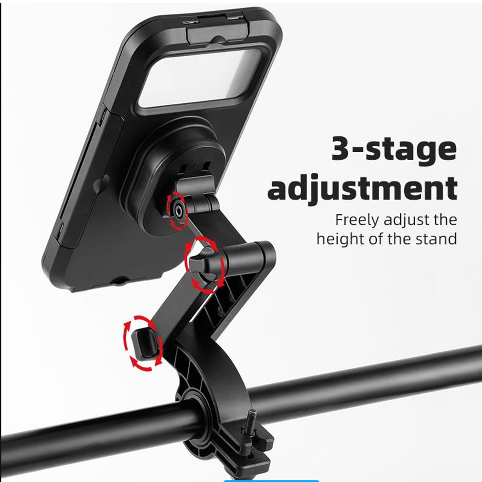 1. Водонепроницаемый дизайн: этот велосипедный держатель для телефона имеет полностью закрытую водонепроницаемую конструкцию, обеспечивающую надежную защиту. 2. Регулировка в 3 градуса: эта сумка для велосипедного телефона поддерживает регулировку в 3 и 360 градусов, поэтому вы можете легко регулировать углы обзора. 3. Широкая совместимость: эта сумка для велосипедного телефона подходит для телефона размером до 6,7 дюйма и руля от 22 до 28 мм. 4. Чувствительное прикосновение: вы по-прежнему можете легко прикасаться к своему устройству и управлять им в этой передней сумке для телефона на велосипеде. 5. Прочный материал: эта сумка для телефона на руле велосипеда изготовлена из АБС-пластика, ПВХ и нейлона из стекловолокна, износостойкая и устойчивая к царапинам.