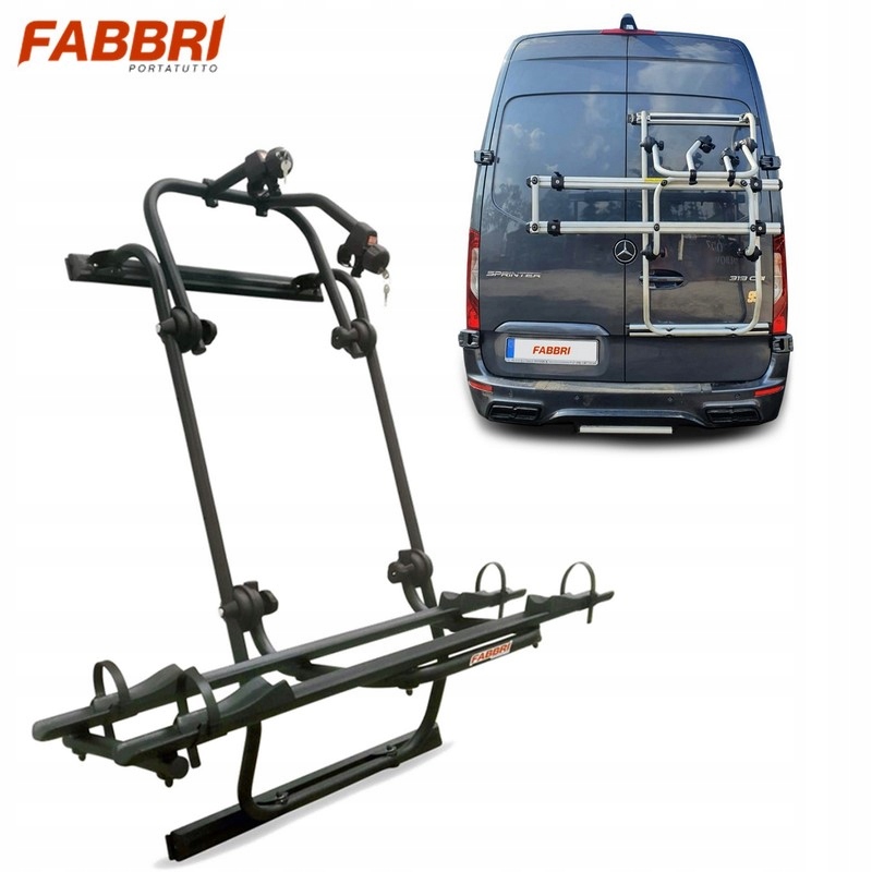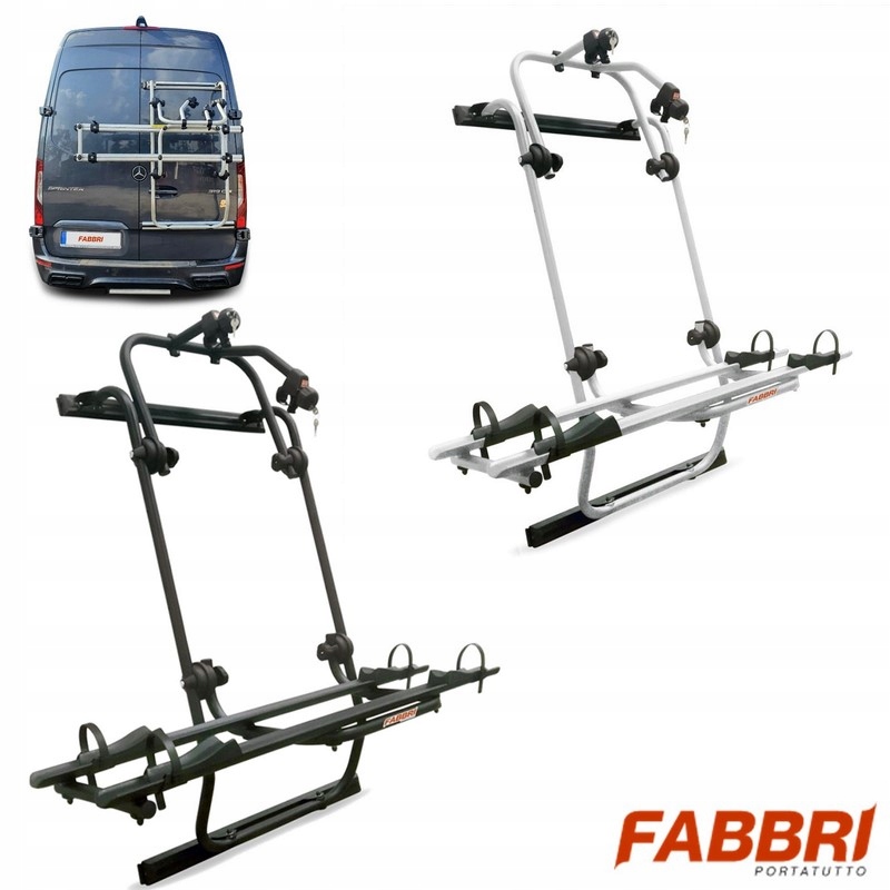 Крепление для двух велосипедов от итальянского производителя Fabbri позволяет перевозить велосипеды на задних дверях автобусов, таких как: Mercedes Sprinter, Volkswagen Crafter б> п>